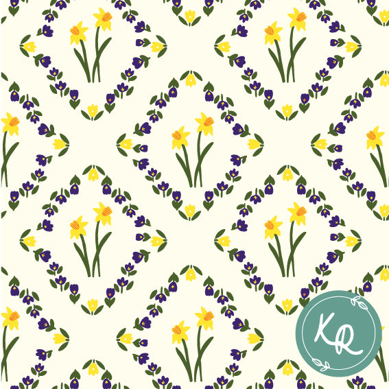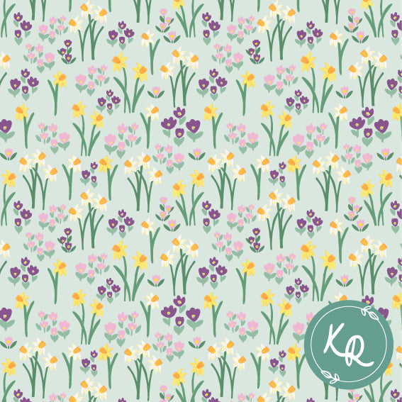 Captures the joyful movement of daffodils swaying in the breeze. This pattern showcases their natural elegance and cheerful spirit, perfect for celebrating the beauty and vitality of spring. Available in four colours Cream, Pale Pink, Pale Blue and Mint